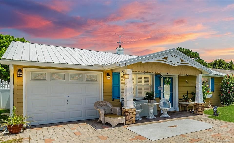 Under Contract, bring your BACK UP OFFER! Welcome to your sunny oasis just 6 miles from Siesta Key! This Key West style bungalow radiates light and warmth, accentuated by a skylight and large tile Florida room, perfect for enjoying the sunshine year-round. Relax in your oversized 8 ft deep POOL, and head to one of the worlds best beaches! NO HOA fees makes for a perfect primary residence, vacation home, or short term rental in desirable Sarasota Florida! This west facing home and front porch create a cozy place to catch the stunning Southwest Florida sunsets. Our favorite features include the fully enclosed yard with vinyl fence, solid wood walnut doors with bronze knobs throughout, plantation shutters, smooth Corian kitchen countertop and sink, and of course the shark and barracuda tile design on the floor of the in-ground gunite pool! Curious for more? Come see for yourself! Just inside, you will be welcomed into the large light and bright, open living and kitchen areas adorned with skylights, recessed lighting, exposed brick, wide plank wood floors and 5 inch baseboards throughout. Enjoy the view of the private backyard oasis from the kitchen and oversized tiled Florida room sipping your morning coffee or evening cocktails. Don't miss these features: 40 gallon hot water heater new in 2022, Culligan whole house water filtration system new in 2019, newer pool pump (roughly 2019), HVAC new in 2017 and serviced in 2022, washer & dryer new in 2017. Ashton Elementary, New Gate Montessori, and Sarasota Middle School are all in walking distance. Reap the benefits of a short jog or bike ride 1.2 miles to the Ashton Trailhead of the Legacy Trail. A short drive and your toes are in the soft, super fine, Siesta Key sand and you are gazing upon on the turquoise waters of the Gulf of Mexico at beach access 12. An oversized pave stone driveway provides ample parking, including space for a boat or RV, making it a dream for outdoor enthusiasts. And all of this nestled in a friendly neighborhood with no HOA fees, offering the ideal blend of comfort and freedom. Come experience the joy of Florida living at its finest!