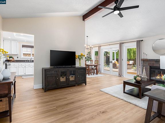 This beautiful single-story home features 3 bedrooms and 2 bathrooms, situated on a large private lot and nestled in the desirable Rancho Arroyo neighborhood. The home features an inviting great room with high ceilings and a fireplace, dining room with 15-foot window with French doors, updated baths, and comfortably sized bedrooms. The open kitchen features stainless steel appliances with professional style 5-burner gas smart range with air fry feature, dishwasher and counter depth refrigerator, white cabinets with ample space and storage, lovely countertops, and a fantastic island. This home includes updated fixtures, beautiful wood frame beveled glass front door, heated floor, recessed lighting, dual pane windows, and gorgeous 9-inch-wide plank floors. The backyard offers a large grassy area, spacious deck with an arbor for relaxation, and barbecues. The side yard includes ample room for RV parking and possible ADU, and the other side has a shed complete with electricity. The home is equipped with washer and dryer, and central HVAC with a HEPA filter system. Minutes away from nearby parks, Downtown Livermore, shopping, dining, Wineries, Breweries, freeways, the ACE Train, BART and outstanding schools. Open Saturday & Sunday.