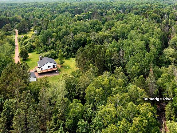 As you drive down the long setback driveway off of McQuade Rd, you'll start to see what a magnificent property this is! Framed on 4 acres in the tall pines and mature hardwoods with 400 ft. of scenic frontage on the Talmadge River & a large beautiful private yard is this completely custom 2022/23 rebuilt modern white black cedar scheme 4 br, 3 ba home. With over 2800 sq. ft of living space and open concept living floor plan, this home will surprise & wow you as you enter each room! Enter via the elevated 46 ft long custom cedar deck as it overlooks one of the prettiest private settings you will find! Once inside you will see the original field stone fireplace and cedar wrapped exposed beams along with the incorporation of an oversized modern entertaining kitchen/dining/living combo space. Custom white oak & quartz countertops throughout the kitchen and wine fridge/bar areas along with craftsman style trim and doors with modern light fixtures & hardware give the look as if this room came straight out of an interior decorators showroom! So much natural light everywhere with the use of oversized large black clad Marvin windows and doors give this house an air of timeless beauty. Custom touches throughout, such as in the powder bathroom, and you'll notice there is something very different about the care and thought that went into the build of this home. The primary suite in the rear of the home features a double walk in closet and one of the nicest custom marble floor to ceiling showers you will find! In the walkout basement you'll be surprised by the amount of natural light and large windows again along with a huge 2nd family room with quite a bit of storage. A brand new 2 stall garage finishes off this outstanding property! The white LP lap siding on the house, combined with the white LP board & batton garage siding & black metal accents everywhere are such a clean/crisp/modern look. Don't forget to take a walk on the wide trail through the yard to see the beautiful river setting! The location of this house being 1 block from Lake Superior and the McQuade safe harbor and yet 5 minutes from Lester River with frontage on the Talmadge River is so unique! You won't find another property like this come and see it today!