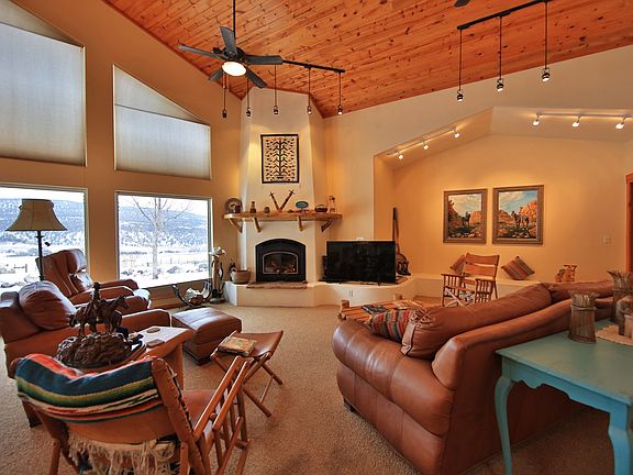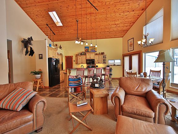 Home, Irrigated Acres, Shop for Sale in Colorado This 2174 sq ft, 3 bed with additional bonus room, 2 ¾ bath, 2 car attached garage is built with comfort and luxury in every room. Many unique additions make this a one of kind home. An open concept carpeted living area with vaulted ceilings, stunning fireplace, and efficient tiled kitchen with granite counters, and upgraded appliances included. In floor radiant heat and large windows make the home cozy. Jacuzzi tubs with soft seating, skylights, and walk in shower all add to relaxation. Double glass doors lead to the outside with patios, pergola, lawn, trees and to the 35 irrigated acres of pasture for hay production/pasture for livestock, side roll and big gun sprinklers, fully fenced and cross fenced. Heated 75x50 building with office/ bath, complete RV hookups. Private location with views and easy year-round access. Just minutes away from all the outdoor recreation Colorado provides. Comfort and style partially describes this custom designed home located on the Western Slope of Colorado. Surrounded by mountains and wildlife views, enjoy nearby recreation in all directions. Gain access off of paved county KE Road along a graveled drive to this 2174 sq ft, 3 bedroom with bonus room, 2 ¾ bath. Handicap assessable this ground level ranch style home is designed with wide doors and hallways and bathroom additions for easy access. Colored concrete patterned walkways and patios add to the attractive landscaped lawn and trees. Enter through the ornate wood planked door with a shuttered peek hole for security into a tiled foyer with coat closet. Walk into the open concept living area with wood high rise ceilings, carpeted flooring, elegant fireplace with slab hearth and rustic wood mantle, and built in wall seating. Cook a meal in the efficiency planned kitchen with granite countertops, glass backsplash, wood cabinets with underneath lighting, pantry, glass top range, dishwasher, double door fridge with bottom freezer, island with high seating counter bar and enough room for the dining table. Attractive tiled patterned floor. The huge, angled picture windows with blinds span the entire wall to enjoy views of Grand Mesa, the Beehive formation landmark, and the property. The unique hanging light fixtures, recessed lighting, lighted inset wall nooks, arched and double doors, wood trim, textured walls add to the cozy living area. Enjoy privacy and rest in the spacious carpeted master bedroom with more views, double doors leading to a private patio, walk-in closets. The master bath has a soft seated jacuzzi tub for those hydrotherapy soaks, shelving, tile and glass blocks and skylight for natural lighting, recessed lighting, and tiled floor. Double sink vanity, walk-in glass shower with seating, linen closet, and commode room. The other 2 bedrooms are carpeted and hardwood flooring, double door closets. The upstairs bonus room is accessible through pull down stairs. The second full bath has a soft seated jacuzzi tub, pedestal sink, tiled flooring. Access the 2 car garage with work area with counters and cupboards or to the covered patio with a pergola through the laundry room with stacked front loading washer/dryer, tiled floor, cupboards, sink, and bathroom. The custom well-designed plan of this home takes advantage of the solar passive heating system in addition to the in-floor radiant hot water heat. Propane gas, evap cooler and water softener, septic and well. Metal roof has roof ledge to slow snowmelt to the gutters. Attractive stucco siding. The many additions throughout this home create a one of kind design for comfort and luxury with country living. The 35 acres of fenced grass/alfalfa pasture is irrigated by a big gun and side roll with 25 shares of Bull Basin Creek and #2 Bull Creek irrigation. Bring your vision for any need to use the 50x75 heated building. Concrete walkways to this insulated building with radiant heat, concrete sloped floor with drain, work benches, partial wood wall, upper loft storage, 220, tub sink, 2 wide and tall overhead garage doors with automatic openers, overhead lighting, RV hookup with dump inside and outside. The 10x25 office area has paneled walls, concrete floor, full bath, windows with views, separate entrance from shop or outside. Lots of parking area for vehicles, equipment, or animal pens. Fed Ex and UPS daily deliveries. Landline, internet, cell reception. Short drive to historic towns of Collbran, Mesa with many residential services and within minutes to I70 by hwys 330 and 65. Check out this one of kind exceptional property at the base of Grand Mesa, known as the world's largest flat top mountain. The property is a few minutes from Collbran and a short drive from I70 along the scenic routes of hwy 65 and 330. This western historic town contains small businesses with many services for the residential needs of the communities. The friendly helpful atmosphere of the town offers medical facilities, churches, schools, fire and police departments, feed store, hardware, auto service, specialty shops, vet clinic, bank, PO, restaurants, motels, liquor stores, farmers market, and more. Many community events and festivals throughout the year includes Heritage Days, farmers markets, Christmas craft shows, rodeos, gymkhanas, and an occasional cattle drive through town or along country roads. Grand Junction is approximately an hour away off of I70 with major shopping, regional airport, colleges, hospitals, and much more. Travel in any direction and find nearby Colorado recreation for any interest. With an 1800 acre lake behind the Vega Dam, Vega State Park offers recreational activities--boating, fishing, jet skiing, camping sites, and BLM and National Forest grounds. Nearby Vega Lodge has cabin rentals, restaurant. Highway 330 follows Plateau Creek and winds through Plateau Valley among ranches and residential homes to Highway 65 known as the scenic byway of Grand Mesa - the largest flat top mountain with over 3