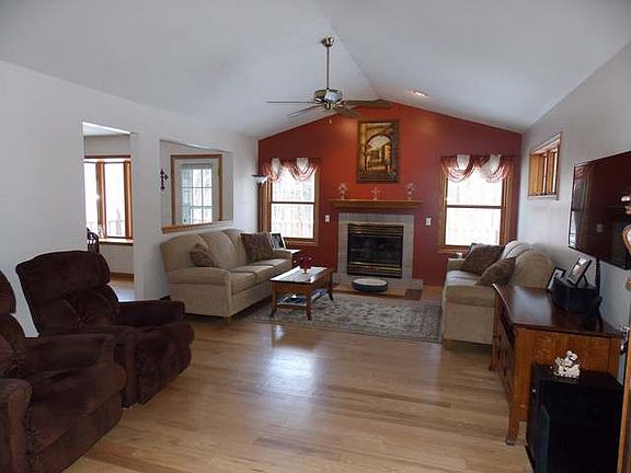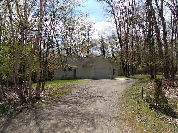 Beautifully maintained 3 bedroom, 2 bath home, attached 2 1/2 car garage & on almost 2 acres. Property is located in the White Birch Recreational Association, which offers access to the club house indoor heated swimming pool, 8 ft deep on one end & 3 ft on the other, sauna, sitting room over looking the lake, entertaining room, putt putt golf, tennis/basketball court, private campground, & so much more. Home has mostly hardwood flooring through out, vinyl flooring in bathrooms, carpet in basement. Drywall & oak trim through out, spacious kitchen w/oak cupboards, island, & dining room w/walkout to deck. Cathedral ceiling in living room with cozy gas log fireplace. Partially finished walk out basement, large family room & huge storage area. House is set up on a separate panel for included generator. Stove, refrigerator, washer, dryer, dishwasher, owned water softener, & hot tub are all included. Nice wooded views from every window, very peaceful setting, & located on a dead end road.