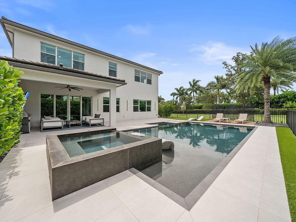 Finally a home that checks all the boxes. Newer construction, modern designed and beautifully appointed upgrades offering 4 bedrooms (primary has 2 walk in closets) 4.5 bathrooms, loft, flex room and 3 car garage This home highlights an open and inviting floor plan ideal and designed for entertaining. The kitchen features, a massive quartz island, glass tile backsplash, abundance of cabinets (42'' soft close), 36'' gas cooktop, KitchenAid appliances and ample sized pantry. Boasting 24x24 porcelain tile inside and 24x48 nonslip porcelain tile outside. Outside you'll find your own private oasis with a fenced in yard, only one neighbor, landscaped for privacy, sundeck, large resort style pool & spa with a gas outdoor kitchen. Join this very neighborly community and a chance to call it home.