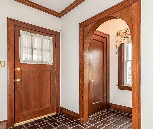 Step into this charming century home nestled in a prime neighborhood, just moments from shops, eateries, and parks! A classic Colonial style welcomes you with its inviting front porch. Inside, the living room boasts crown molding, a bayed wall of windows, and a cozy fireplace framed by marble and built-in bookcases. Gleaming hardwood floors flow into the formal dining room adorned with beautiful woodwork and built-in china cabinets. The kitchen showcases modern stainless steel appliances and a casual dining area with wainscot paneled walls and a picture window overlooking the backyard. Upstairs, three spacious bedrooms share a vintage style full bath with tiled walls and a pedestal sink. The finished attic adds versatility to suit your needs, whether it be for storage or seasonal living space. Outside, enjoy a brick patio and a sizable backyard next to an oversized two-car garage with a bonus workbench! This meticulously maintained home blends quality craftsmanship of the past with today's modern conveniences.