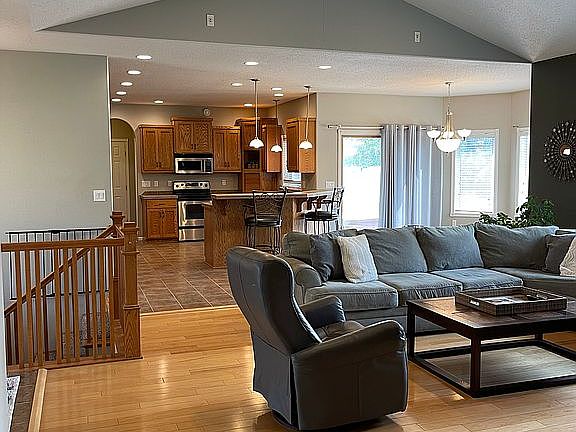 This beautiful 4 bed 3 bath rambler is located in the coveted Rose Creek neighborhood. The main floor boasts a kitchen with tons of counter space, maple hardwood floors, a brick gas fireplace, and a vaulted ceiling. The master bedroom includes a large tile shower, jetted tub, walk-in closet, and double vanity. The basement offers additional entertaining space with a wet bar open to the living room. Outside, you will enjoy a fully fenced backyard with a private deck and an optional hot tub. Other amenities include off-peak floor heat in the garage and basement, garage entrance from basement, and a sprinkler system. LOW SPECIALS! Buyer’s agents welcome.