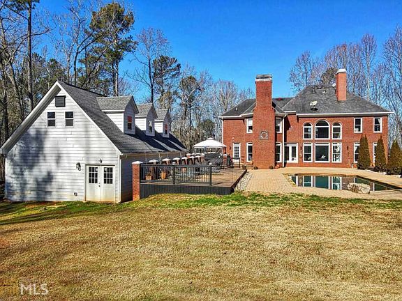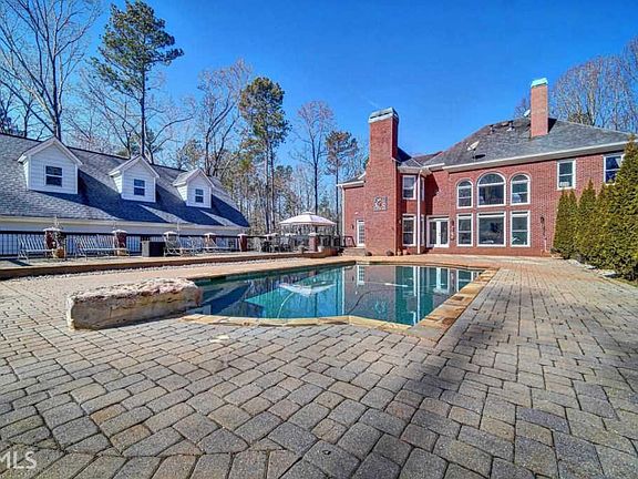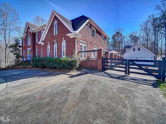 Highly sought after Ascot Community in WEST FORSYTH SCHOOLS!! Come visit this well appointed all-brick home estate situated perfectly on 5 fully fenced acres. Gated private driveway leads you to your new home. Stunning 2 story foyer and great room greets you at the door. Floor to ceiling windows with crystal clear views of the swimming pool. Chef's Gourmet kitchen with tons of cabinets, counter space, extended island with bar seating and a cozy masonry fireplace. Main level - guest bedroom, Library/Office and 2 full bathrooms. Second level - Over-sized Master Retreat over-looks the pool and garden offering large sitting room with private fireplace. Luxurious ensuite features 6ft free standing tub, tile shower w/frameless glass door, HEATED TOWEL RACK, double vanity and 2 walk-in closets. Ample sized bedrooms with adjoining bathrooms complete this very functional second level. Basement -Theatre/Media room, full bathroom, additional laundry and tons of storage space. Massive fully fenced back yard is super private offering excellent space for all of your active dogs. Cobblestone patio is the perfect setting to lay out and relax by the pool and hot tub. Detached garage with unlimited potential!! Multiple car storage, workshop, and above unfinished space could be used as private office or additional storage. This is a home you don't want to miss!!