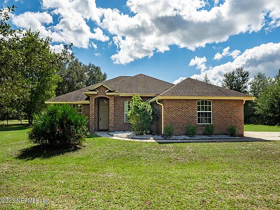 Hard to get 5 acres in this area with a all brick home. Equestrian area right here! No CDD or HOA dues to live here! Home has 3 beds 2 baths with an office and extra space added on would make a great playroom or extra living area. Also there a florida room with ac. Kitchen has granite countertops. Updated guest bath could also be a pool bath if you build a pool. Door exits out to your huge backyard. Separate dining room. Family room with wood burning fireplace. Theres already a partially fenced area if you want horses or cows. Theres a well and septic so no water bills to pay! Close to the best St Johns county public schools,