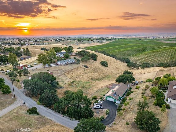 Enjoy enchanting views of neighboring vineyards and the comforts of everyday living in this single story 1,664 sq.ft Paso Robles home. Complete with 3 bedrooms, 2 bathrooms, living and dining room and kitchen with stainless steel appliances. The primary suite showcases vaulted ceilings, private backyard access, walk in closet and a spacious bath. Set on 1 acre with a private driveway, attached 2 car garage, charming indoor-outdoor living with drought tolerant landscape, owned solar system and back-up propane generator. A bright and beautiful home with a picturesque wine country backdrop awaits you.