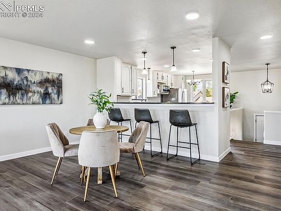 WOW. This is the one you have been waiting for. When the bi-level homes first started to become popular it was because of their amazing use of space . They make the house feel so much bigger. This one is no exception. Gorgeous total remodel. The upper level will instantly grab you rattention with its spacious kitchen. Gorgeous quartz premium Statvario Nevo sits atop of tons of cabinetry. Custom tile backsplash and Appliances are all stainless steel. The living room is large and features some wonderful views of Pikes Peak. Just off the living room, french doors will lead you to a huge Primary Bedroom and bathroom. All fully renovated as you would expect. Another bedroom and full bath complete the upper level. In the lower level, you get 2 more bedrooms, 1 fully renovated bathroom making this house a 4 bed 3 bath perfect for buyers of all sizes. The lower level also has a 2nd family/flex room. Laundry, mechanical and storage will also surprise you. Now lets get to the extra things you weren't expecting. Off the upper level is a great deck with insane views. Below it a covered patio, and more decking. There is also an awesome playhouse that I wish I had growing up. The outdoor options are endless. The house also has a 2 car garage perfect for your vehicles, tools and toys. Being on the corner means one less neighbor. With easy access to the freeways and airport makes this house splendid. New AC. Newer windows. Washer and dryer included.This one should not last long