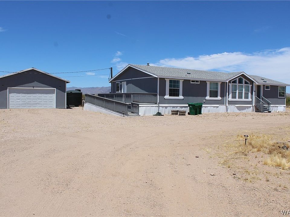 LARGE 32X60 SPLIT PLAN DOUBLEWIDE CAVCO MOBILE HOME WITH A 24X 28 DETACHED GARAGE ON 2.25 ACRES. NOT IN FLOOD ZONE. EASY ACCESS OFF OATMAN RD (HISTORIC RTE 66) 3 BEDROOM 2FULL BATHROOM. MASTER BEWDROOM HAS BOINUS NURSURY /OFFICE/DEN/ SITTING ROOM ATTACHED AND HUGE MASTER CLOSET. LARGE LAUNDRY ROOM EASILY FITS LAUNDRY APPLIANCES AND FREEZER CHEST. LAUNDRY APPLIANCES ARE NEGOTIABLE. KITCHEN HAS DESK STATION AND BREAKFAST COUNTER. CARPET IN BEDROOMS WITH VYNIL PLANK THROUGH OUT REST OF LIVING AREA. LARGE DECK ON WEST SIDE OF MOBILE DOUBLES AS LOADING DOCK.