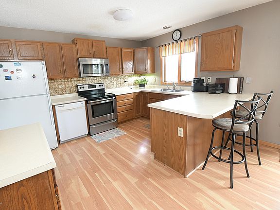 Beautiful 4 bed, 2 bath split level home in a quiet neighborhood. Large open kitchen/dining area. Huge 28ft maintenance free deck overlooking fenced yard w/large apple tree and swing set. Living room wired for surround sound. 4 big bedrooms. Huge family room w/beautiful gas fireplace w/brick surround. Updated full bath off family room. Newer furnace! Vinyl siding. Concrete patio.