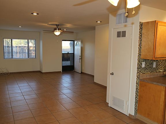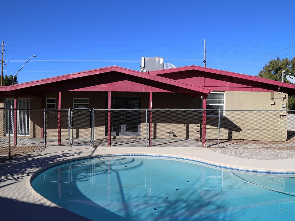 Rare find with this ranch home that comes with an uncommon 5 bedroom/2 bath split floor plan great for guests or to have spare bedrooms to be used for office/workout/craft room. Ceramic tile throughout with new carpets in bedrooms, dual sink vanity in hallway bath, ceiling fans throughout and separate laundry room. Galley kitchen with gas cooktop and separate stacked electric oven/microwave.Also extremely hard to find for the area is the conventional swimming pool; perfect relief and entertaining in the Tucson summers! Fenced in front yard, side yard, and double back yard spaces would be ideal for pets or play. Oversized side driveway with custom concrete planters is perfect for multiple vehicles or equipment. Extra storage shed in side-yard. Close to shopping & Freedom Park.