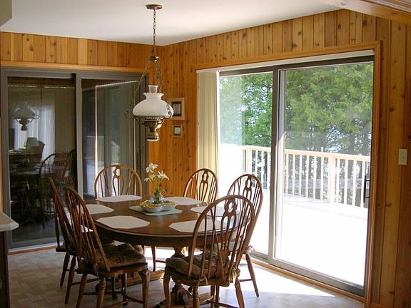 Very private setting, situated a few doors north of the Hardwoods. Custom built 3 bedroom, 2 bath home in move-in condition! Numerous Anderson windows lakeside, including 3 sliders, for a terrific view of the lake. Living room has brick natural gas fireplace w/Heatilator and vaulted ceiling with beautiful Cedar tongue & groove paneling. Kitchen has all new stainless appliances in 2016, oak cabinets, snack bar and dining area with lake view; great for entertaining with 8' slider opening to full length deck. Another sliding door opens to possible office or additional sleep space. Greet each day with a fantastic view from the master bedroom; 8' slider opens to the deck for your morning coffee. Two-car attached garage. All Cedar sided. Total privacy. You'll see no neighboring houses from this home. Must see!