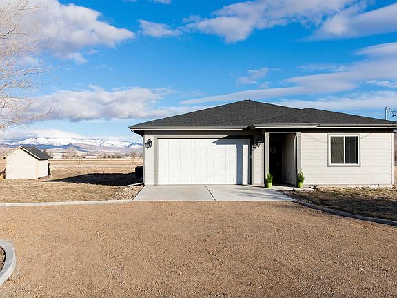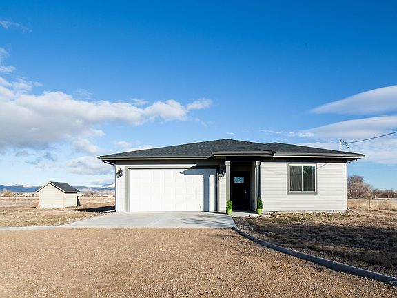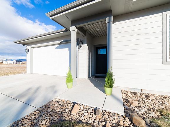 Beautiful, custom built ,single-level home situated on 1.3 acres, located in a quiet neighborhood with quick access to the interstate. Built in 2022, three bedroom, two bath, open floor plan! The great room is flooded with natural light and a Breathtaking view of mountains! Kitchen features-quartz counters, stainless steel appliances, pantry. Laminate flooring throughout the house. Nice covered patio, where you can enjoy the sunrise! The exterior features room for garden and a space to build a shop or an ADU ! Individual well and septic. Detached shed offers storage for all your needs. No HOA / CC&R's. 40 minute drive to Boise. Come see this gorgeous property!