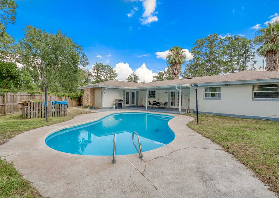 Westside pool home and you should move fast. It is a 3 bedroom 2 bath home with a non conforming 4th bedroom. The kitchen was renovated recently and features an eat in space, breakfast bar, and gorgeous cabinets. There is a large family room with wood burning fireplace. The outdoor space with the pool is the most incredible part of this home. There is a covered lanai to grill out and also nice yard space around the pool. Don't miss out on this home. This home is conveniently located to highways, shopping, and restaurants.