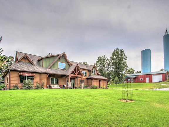 45 Acres, Seller will just sale 7 Acres if you prefer. Stunning open floor plan ready for Entertaining, Lake Hudson View of Lake. Built in 2016. Vaulted Wood Ceilings, Double Fireplace, Back up Generator, Large shop/Apartment is 2,400 square feet with 2 overhead doors. Insulated Thermal Case Windows.