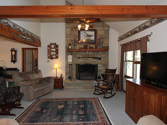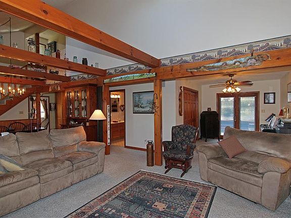 Awesome Hard to Find Log Home w 4 BR, 2.5 Baths, 1.56 acres on private lake with fishing, 2 car attached & 2 car detached garage. Open concept great room w/ wood burning stone fireplace, DR, breakfast room open to gourmet kitchen w all kitchen appliances inc, Finished lower level has Family Room, 2 Bedrooms, This home has newer roof, water heater and skylights, very cozy and in excellent condition. This one is a must see, sitting on a cul-de-sac in very serene private setting!