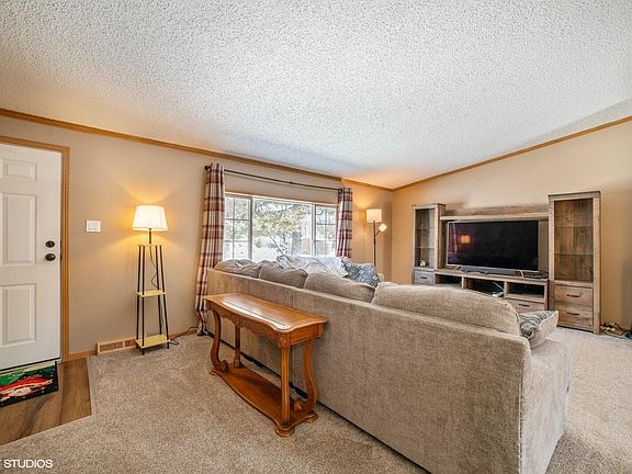 Single family manufactured Ranch home with 3 bedrooms, 2 baths, 2.5 car attached garage with concrete crawl, plus approx 40' x 58' Barn & Shed nestled on over 3 acres, just a 1/2 mile from Sandy Pines! Home features Great Room with Cathedral Ceilings and open to Den area. Eat in kitchen with Laminate floors, island, newer sink and faucet with sliding doors to Deck and back yard. All appliances included! The split layout offers a private main bedroom with large walk in closet, Remodeled bath w/ new vanity, shower, floor and toilet. 2nd & 3rd bedrooms share a full bath. New carpet throughout. Septic cleaned 2024 (Rensselear Septic). Roof approx 12 years old. 13 Month HWA home warranty offered with full price offer. Low, Low taxes - Zoned Agricultural