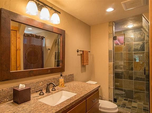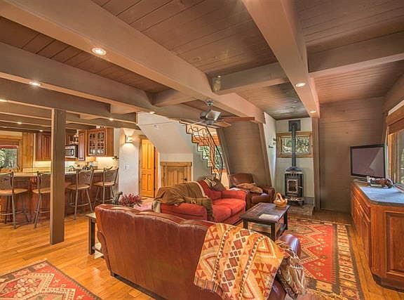 Beautifully remodeled cabin on over 1/2 an acre. A very special place to escape to with hardwood floors, concrete and granite counters, stainless appliances, lower bath has heated slate floor, dual pane windows, recessed lighting and unique iron stair railing. This design has two popouts that offer more space and light. Property has easy access to the backcounty - perfect for snowmobiling or xc skiing. Large circular driveway, shed holds 3 snowmobiles. Peaceful, park-like setting with Yuba River close by.
