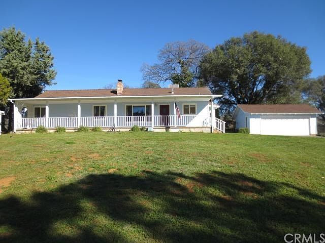 BEAUTFUL LOCATION IN THE MARIPOSA TOWNSITE. 3 bedroom 2 bath home with detached garage on a 3/4 acre lot. You will absolutely love relaxing on this covered porch with wonderful setting. Home is set back from the street, a long paved drive along the expansive front grass area leads up to the home and garage. Remodeled kitchen comes with stainless steel appliances, corian counter tops, tile flooring, custom cabinets and bay window offers lots of light into a breakfast nook. Living room with brick fireplace and hardwood flooring. and room for a dining area to meet your custom needs. Various upgrades to plumbing and electrical in portions of the home.