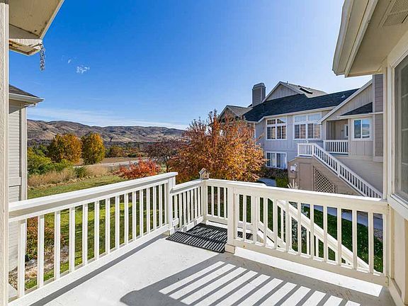 Quiet & private condo overlooking the Boise foothills & river. This end unit, features 1035 square feet, 2 beds and 2 baths. The kitchen has granite counters and overlooks the living space. The unit includes a 1 car garage and storage downstairs. Community offers pools, hot tubs, workout facility & tennis courts. Close to downtown Boise, walking & biking paths and has greenbelt access.
