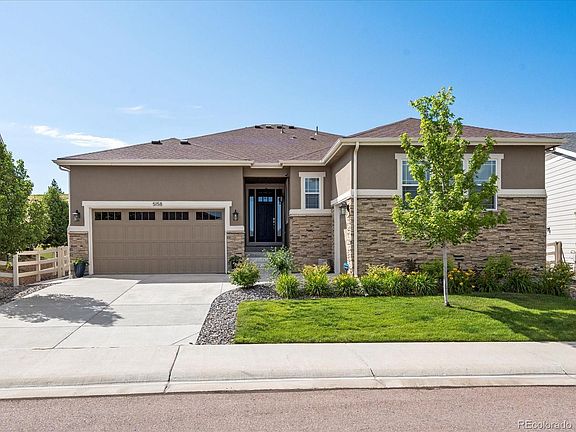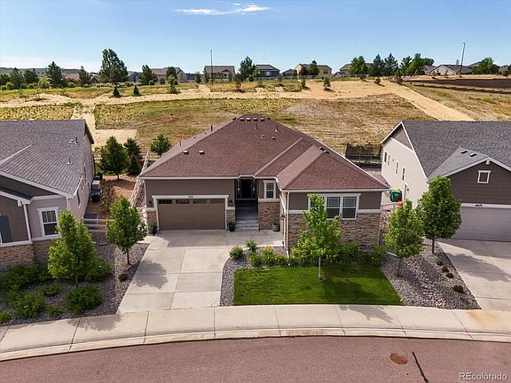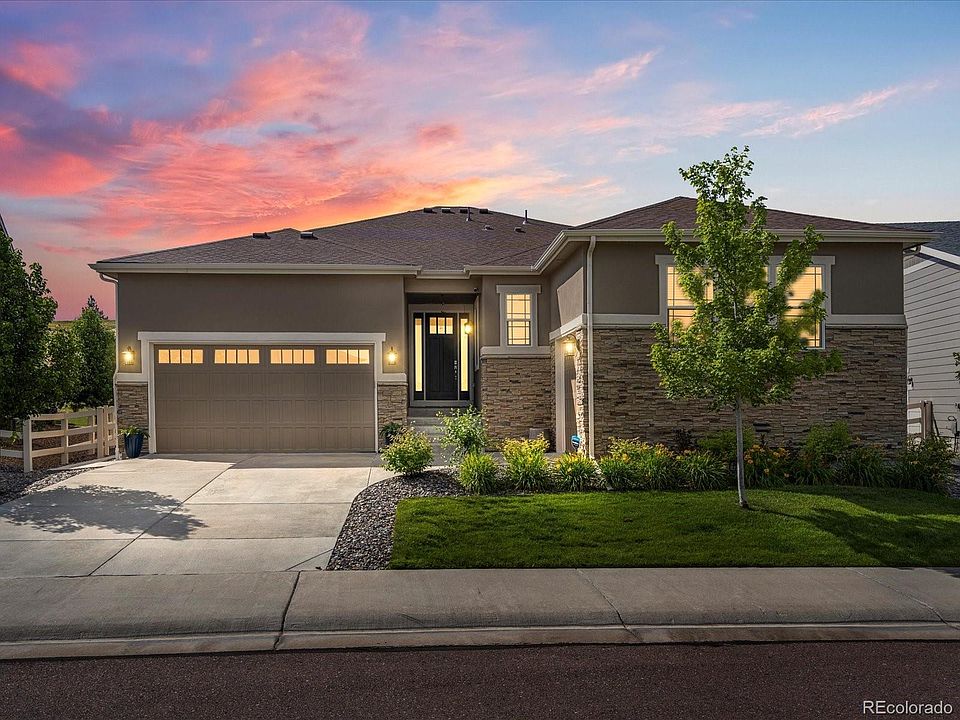 Welcome Home to This Crystal Valley Ranch Gem! This highly sought-after Daniel floor plan is better than new and packed with luxurious upgrades throughout! From the moment you step into the foyer, you’ll notice the pre-engineered hardwood floors, upgraded lighting, modern railings, and premium finishes that set this home apart. The spacious great room features a beautiful stone fireplace and flows seamlessly into the gourmet kitchen—complete with quartz countertops, a large island, top-of-the-line GE appliances, extended counter space, and abundant pantry and cabinet storage. A convenient tech center offers the perfect spot for working from home or planning your next meal. Down the hall, you’ll find a dedicated home office with custom built-ins, two additional bedrooms, and a full bath. The main-floor primary suite includes a generous walk-in closet and a luxurious en suite with an extended walk-in shower. Head downstairs to the finished basement, perfect for entertaining with a large second living area/game room, pre-plumbed for a future wet bar and tons of storage! You’ll also find another flex space ideal for a second office or home gym, an additional bedrooms, and a ¾ bathroom. Step outside to your covered back patio and enjoy the professionally landscaped backyard with no rear neighbors—ideal for privacy and relaxation. Located in the vibrant Crystal Valley Ranch community, residents enjoy access to a pool, fitness center, parks, trails, top-rated schools, restaurants, and more! With easy highway access and just minutes from Castle Rock Outlets, this exceptional ranch home truly has it all! Don’t miss your chance to make this move-in-ready beauty yours! Priced to sell!