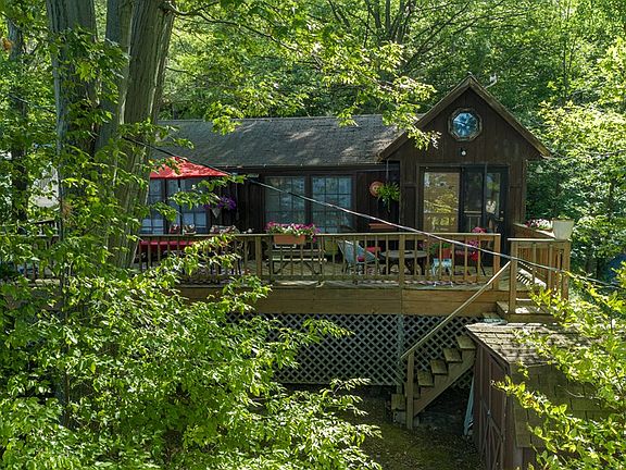 Premier location on Seneca Lake! Seasonal 3 bedroom 1 bath cozy cottage getaway is excellent for operating as an Air BnB or a vacation spot. Comfortable four-car parking. Open concept living space with a large private back deck overlooking Seneca Lake. Enjoy the 50 ft of beachfront with a permanent dock, boat lift, and boathouse for all your lakefront activities! Most furnishings convey some personal items do not. Showings start on Tuesday, August 2nd at 11 am and end on Monday 8th at 5 pm with the review of all offers on Tuesday 9th at 12pm.