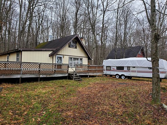 Check out this adorable chalet located in Arrowhead Lakes. This home offers 2 bedrooms and 1 bathroom, with a large woodstove for cold days this winter. Nice camper and golf cart are negotiable as well. TLC is needed bring your own ideas to make this home yours!. It is bordered by 100s of acres of game lands for outdoor enthusiasts and the community also has great amenities. Lakes, Beach's, Playgrounds, Pool, Lodge, Fitness Center and more! Schedule your showing today before it's to late.