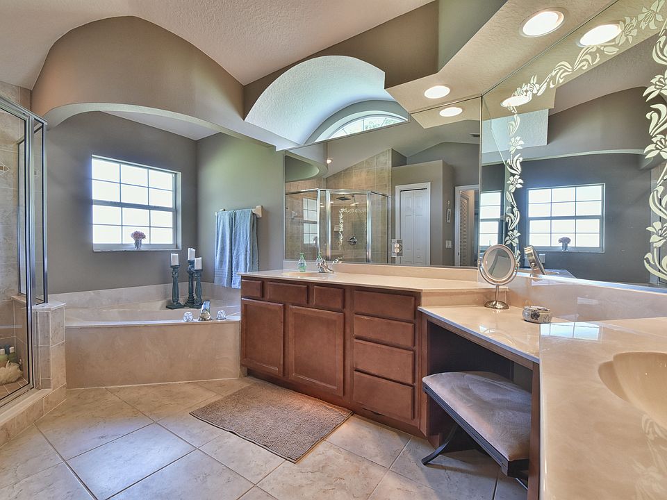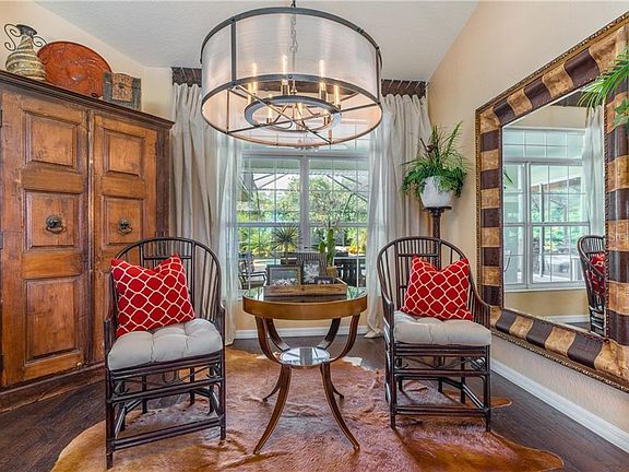 Beautiful 4/3/3 pool home located in gated SE community. Foyer opens to formal living/dining rooms (currently used as sitting room) which leads to large kitchen w/new granite and updated center island, which is sure to become a favorite gathering spot. The great room is fully open to the kitchen and has a bank of sliders opening the home to a spacious lanai and summer kitchen (with grill, fridge and sink), and a spectacular heated, salt pool with a gorgeous waterfall. Home features a triple split bedroom plan, with a guest suite with own bath and built in desk in the hall area. The other 2 guest bedrooms share a bath. Master area has his and hers closets, double vanities and a separate garden tub and shower. Wide plank wood flooring can be found in all the living spaces, along with crown molding and high ceilings in some areas. Interior of the home was painted in 2017 and exterior was painted in 2019. Owners have given this home a lot of love and it is ready to move right in!
