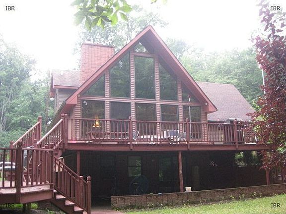 Very Nice Contemporary Home on 10.2 Private Acres with 900' on Yawger Brook. 3 Bedroom 2 Bath home with a full walkout basemant currectly a huge family room with custom built cobblestone fireplace. A-Frame Chalet style home with cathedral ceilings with huge loft master bedroom with extra large walkin closet and bath. It also has a private deck overlooking lovely landscaped yard. Huge deck off the front overlooking the stream. 2 car attached garage and a 2 car dettached garage plus a shed on the edge of the woods. Large blacktop driveway and parking area. Diningroom off the kitchen. Large stone fireplace in the livingroom. Full workout facility. Large pool with custom built deck. Very private drive off of Waldron Rd with 10.2 acres with a beautifully landscaped park like setting.