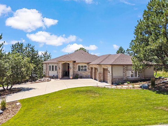 ASSUMABLE LOAN at 2.875% interest rate! Welcome to your dream home at 5159 Warbler Ct, nestled in the prestigious Timbers at the Pinery community in Parker, CO. This stunning 5-bedroom, 4-bathroom home offers an unparalleled living experience with breathtaking city and mountain views. Step inside to discover the heart of the home: a chef’s kitchen featuring granite countertops, an 11' island and high-end appliances, perfect for culinary adventures. The open-concept design flows seamlessly into a spacious living area, where built-in shelving adds a touch of sophistication to the office space. The master suite is a true retreat, featuring a luxurious master bath with a steam shower, providing a spa-like experience right at home. Wake up to the magnificent views from your bedroom and enjoy a cup of coffee on your huge deck or covered patio, both of which offer stunning vistas of the Rockies. Outside, the beautifully landscaped yard features a serene water feature in the front, enhancing the home’s curb appeal. The community is equally impressive, with well-maintained trails for walking, creating a serene environment perfect for relaxation and outdoor activities. Located in a quiet cul-de-sac, this home offers easy access to town while maintaining a peaceful, far-away feel. Families will appreciate the proximity to a middle school and Bayou Gulch Park, both within walking distance. Don’t miss the opportunity to make this exceptional property your forever home. Experience the perfect blend of luxury, comfort, and convenience at 5159 Warbler Ct. Schedule your private tour today!