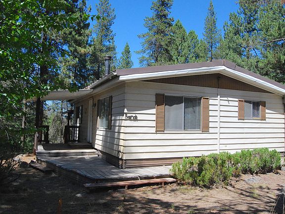 1.76 hillside acres in the Ponderosa Pines is where we start. 24 x 34 manufactured home with an A-frame cabin with attic, 24 x 24 wood sided garage with concrete floor, insulated storage room and a dog grooming parlor. Imagine the possibilities - a retreat with room for RVs and boats...a future building site wiith a peek-a-boo view of Mt Bachelor and South Sister...or how about an affordable home to start living your Central Oregon dream? New septic tank, carpet, range/oven. Owner terms for a qualified buyer with 20% down, 4% interest, 30-year amortization with a 5-year balloon.