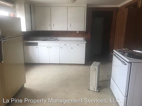 cute older home in La Pine - This cute home is one of the originals built in the 50's, located in town across from the elementary school in La Pine. It has a little wood stove plus electric heat, newly remodeled bathroom, 2 bedrooms, living room, kitchen, laundry room and outside storage. There is a U shaped driveway, room for a couple of cars to park. Go to our website rentinglapine.com for more info. (RLNE3069908)
