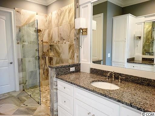This upscale 4 Bedroom, 4-1/2 Bath Brick Home is a beauty. 3 bedrooms, 3-1/2 bathrooms downstairs with a huge bonus room and full bathroom upstairs). 10 Ft. Ceilings through out the main floor with a coffered Ceiling in the great room and tray ceilings in the dining areas and master bedroom. 8' solid core interior doors. Wine Barrel Tile (wood look) throughout first floor. Frameless glass shower enclosures and doors. Separate water closet in the bath with his & her vanity sinks. Custom closets throughout with a huge walk in closet in the master suite. All impact resistant windows. 2x6 exterior walls. Natural gas heat, Navien tankless natural gas hot water heater, brick with stucco accents and trim. Premium Landscape Package with irrigation system. This property is an easy walk to the beach and is NOT in designated flood zone. The home is in a quiet neighborhood, there is no HOA and just minutes from the beach. Custom cabinets and closets. Granite counter and vanity tops. Walk-in attic storage. Luxury Trim Package with 7-1/4 Crown Moulding and 7-1/4 Base. Designer Lighting Package, Premium Sherwin Williams Paint The Exterior is just as beautiful.