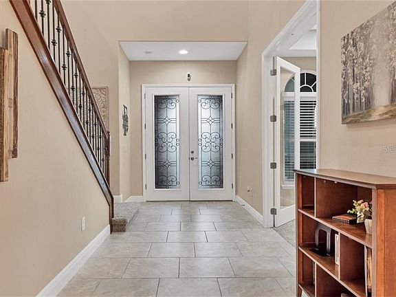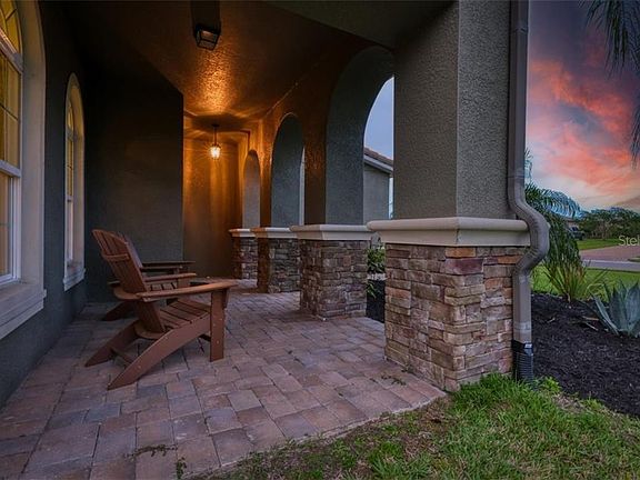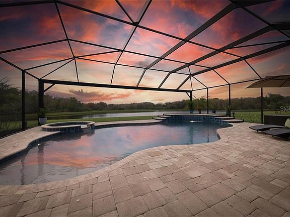 From the pages of a magazine comes this extraordinary, better than new home in the sought-after Rye Wilderness Estates. This magnificent custom estate is situated on the most incredible double pond view lot in Rye Wilderness! Spanish style architecture and a charming front porch with arches sets the stage for this spacious 2-story home. This fabulous home is better than a model, with unrivaled attention to details and unparalleled finishes. This impressive Home conveys grandeur and Elegance throughout every aspect of this unique Marbella floor plan with 5 bedroom, 41/2 bathrooms for a total of 4482 sqft, with tile roof, 3 car side load entry garage, paver driveway and ½ acre lot. Enter thru Double 8ft impact resistant glass doors to a dramatic staircase with Juliet balcony and sight-lines through to the pool & preserve views, 10ft ceilings to office/den area, to Formal Dining/Living room area to the Kitchen that is well-equipped with top-of-the-line stainless steel appliances, granite counters, double ovens and more gleaming solid wood cabinets with soft close drawers and pullouts, more than you could ever need! The design includes both an island and an eat-in dinette area with bill-paying desk AND a butler's pantry just off the family room, all of this opens up to the magnificent salt water heated pebble tec pool and spa, pavers, an unique outdoor kitchen that includes BBQ and Egg grill, sink, granite countertops and much more, but the best and most impressive is the tranquil and serene view of two long ponds with preserve behind that can be viewed thru the Clearview pool screen for unobstructed views of our unique Florida Sunsets. The first of the five bedrooms is an en-suite downstairs, making this a multi-generational home. The additional four bedrooms, four bathrooms and a bonus room are upstairs. The owner's retreat is a relaxing haven: double 8ft door entry to the spacious bedroom features a tray ceiling, 2 gigantic walk-in closets, ensuite an enormous master bath with dual vanities, a garden bath with relaxing soaker tub and walk-in shower. Fantastic location with easy access to Tampa, St. Pete, Lakewood Ranch & Sarasota. Rye Wilderness is known for its generous lot sizes, proximity to great schools, quality-built homes, and offers amenities such as sports courts and a playground. It's only a short drive to great shopping, dining, entertainment, and our world-famous Gulf Beaches!. NO CDD's in this neighborhood and low HOA's makes this the perfect setting for your new home.