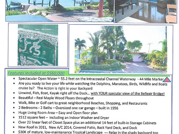 Spectacular Open Water ~ 55.2 feet on the Intracoastal Channel Waterway with YOUR specular view of the Belleair Bridge! Beautiful ~ Real Maple Wood Floors throughout Walk, Bike or Golf cart to great neighborhood Beaches, Shopping, and Restaurants Huge Living Room Area ~ Easy and Open floor plan Indoor Washer and Dryer and Over 22 linear feet of Closet Space plus an additional *BONUS* 14 feet of built-in Bar and Storage Cabinets New Roof in 2011, New A/C 2014, Covered Patio, Back Yard Deck, and Dock $30K of mature, low-maintenance Tropical Landscape --- Relax in the shady backyard too Real Brick Driveway - No need to seal annually (unlike the concrete pavers) *Furnishings available for purchase. No need to move all your stuff ~ start enjoying life today!