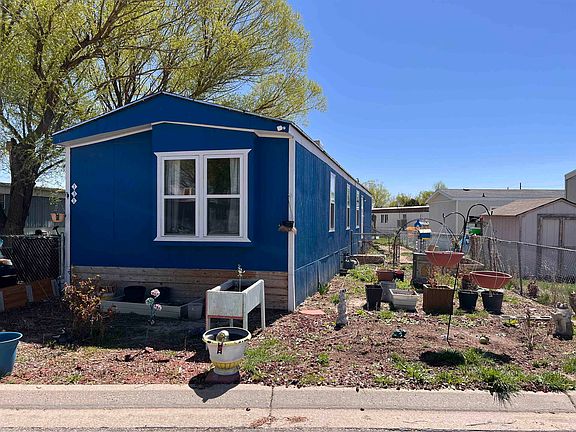 This home is ready for your personal touch. Several updates were completed in 2021 including a new evaporative cooler, exterior siding and paint, new insulation, energy efficient windows, LED lighting, and new beetle wood pine hardwood flooring. It includes 2 sheds on a fenced in, rented lot, with a raised garden bed and is conveniently located close to stores and restaurants. Buyers must be pre-approved with Applewood Mobile Home Park.