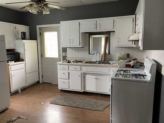 Classified as a duplex on tax records, the stairs are still there in the back to upper unit. Large 4 bedroom on the main floor has been mostly renovated with some new flooring, bathroom started updating, won't take much to live in the first floor unit. The 2nd floor/2nd unit is rough. Renovation has been started but a lot of work needs to be done. Stay in the main unit while working on the upstairs. or use as one really large 6 bedroom home! There is a kitchen and full bath on each floor. Sale is for CASH only.