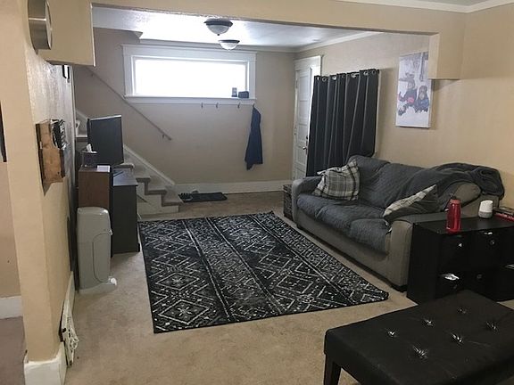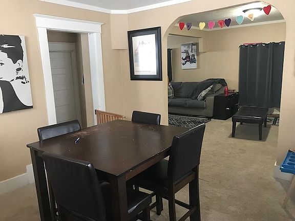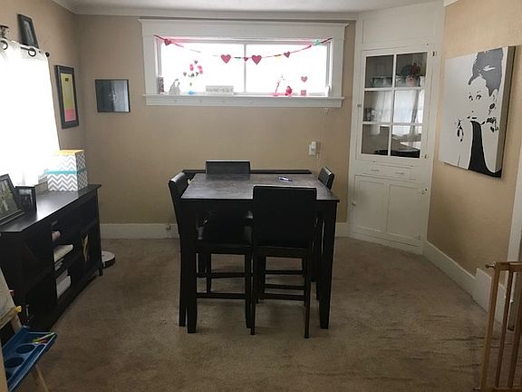 Newer kitchen cabinets, counter tops, and stainless steel appliances. Spacious living room with stair access to upstairs and open archway to formal dining room. Large bedroom is double the size and makes a great playroom, study or master with private seating area.