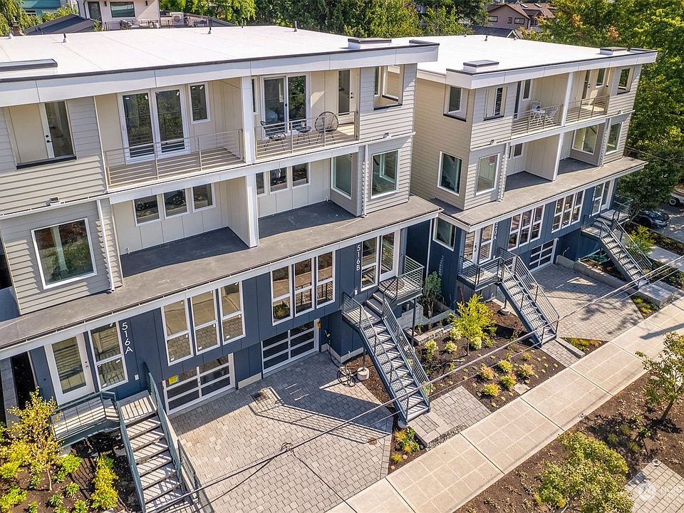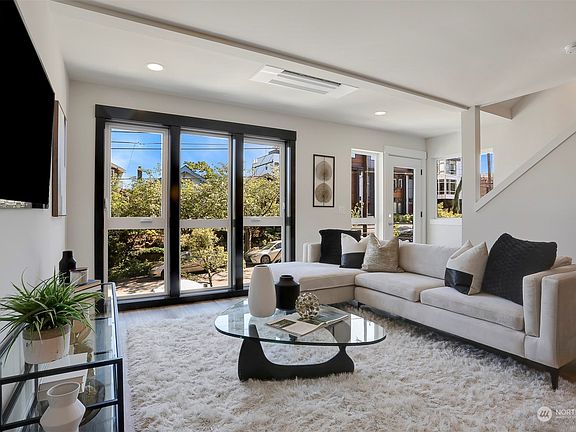 Handsome townhomes styled with larges windows to let in the sun and nice views of Mt Rainer and city. Enter to the main floor/great room, living and dining with high ceilings and lots of space! Kitchen with large quartz island, designer hardware and lighting, Electrolux induction range and hood, refrigerator, Bosch DW that blends into cabinetry. Patio for BBQ. Two full size bedrooms, large tiled bathroom with deep tub and laundry room. Upper level is a full primary suite complete with office, spacious bathroom, walk in closet, covered deck. Mini-split heats/cools throughout each bedroom. Fantastic location above Fremont and near Phinney Ridge and Woodland Park Zoo. Easy access to roads and transit. One car garage and good storage.