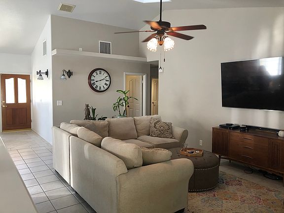 3 bedroom/2 bath home in desirable North-West neighborhood on beautiful well kept street. Quiet and family friendly. Home features open concept floor plan, vaulted ceilings with skylights and plenty of natural light. Wood burning stone fireplace with gas. Tile floors though out. Ceiling fans in all rooms. Master suite with vaulted ceilings and walk in closet with door to back patio and pool. Master bath with double vanity and private double shower. Back yard features a beautiful, well kept pool with brand new pool pump and electric pool cover, easy maintenance and energy efficient. Covered patio with spa. Side yard has a newly installed gated dog run with new concrete and turf with dog door access to home for all you animal lovers. Gated RV access with 220. Garage floor newly refinished and built in cabinetry with plenty of storage. Interior Laundry room with extra storage. New water heater, new cooler, and new pool pump all professionally installed this year. Close, easy desert access for motorcycle enthusiasts, dog walking, and running. Walking distance to Las Flores Elementary School. Contact Lindsay at lindzpowers24@gmail.com (760) 977-6653