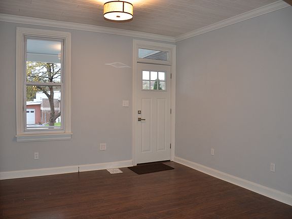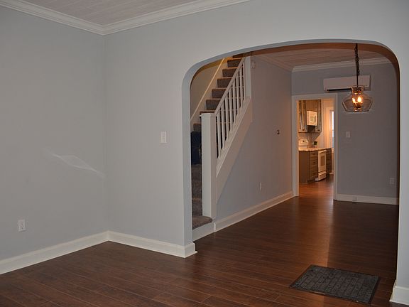 This stunning 2 bedroom (potential 3rd bedroom being used as a nursery) 1 bathroom home was renovated in 2018 and has been meticulously maintained!!! This home welcomes you with a cozy covered front porch. As you enter the home you'll be impressed with the open feel with connecting living and dining rooms with gleaming dark wood laminate flooring, crown molding and a custom built entertainment center. The gourmet eat-in kitchen boasts custom cabinets and beautiful quartzite countertops. The main level also features a laundry/mud room with stackable washer and dryer. Upstairs are 2 bedrooms with a potential for a 3rd bedroom, office, nursery, exercise room or an extension to the primary bedroom. The full bathroom has silver travertine tiled floor, white subway tiled tub/shower. Large attic great for additional storage. The level, fenced in back yard is great for entertaining and offers a 1 car off street parking area. Everything was new when purchased in 2018 including new roof, windows, A/C and heating system. Items updated/replaced during current owners is new 8x10 Shed in August 2019, New water heater August of 2018, Vinyl fencing in rear yard August 2019 . The old natural gas radiant heater in basement works well and is used as auxiliary heat. This home is conveniently located to all major highways, shops, restaurants, antique marketplace and so much more! Call me NOW to schedule your private showing before it's too late!!!