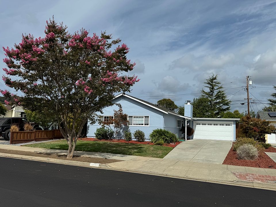 Clean, unfurnished single story home with 3 bedrooms, 1 bath, in house laundry room, and fenced backyard. The home features vinyl plank flooring, kitchen with electric stove, refrigerator, garbage disposal, microwave, and dishwasher. Dual paned windows will help save on PG&E bills. Also includes central heat, air conditioning, washer and dryer, sprinkler/drip system for watering lawn and plants and parking in the attached two car garage. Newly painted outside of house Near Belmont Caltrain station and easy access to 101. Call or email for an appointment. No smoking allowed Owner pays gardener Credit report required Owner pays for gardener. Renter responsible for water, gas and electric, and garbage. No smoking allowed Pets allowed