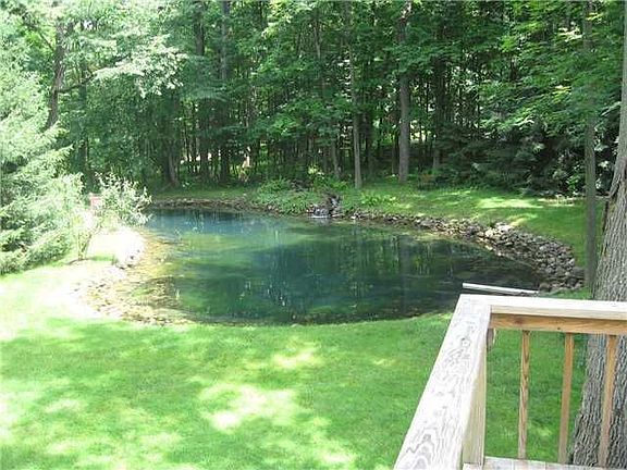 Cozy Cape Cod on private 1.5 acre parcel with Pittsford Schools. This one owner home has 1st floor master suite, 3 bedromms and full bath on the 2nd floor. Formal dining rm-fireplaced formal living rm- large eat-in kitchen with 1/2 bath, laundry and sliding door to enclosed porch. Off porch is covered deck to large open deck that overlooks serene, wooded rear yard with Artisian spring fed pond and stream.Finshed lower level has firplace and bar area. Home has had recent updates and in 2005 thermopane windows and tearoff roof! Call for and easy tour of this special home!
