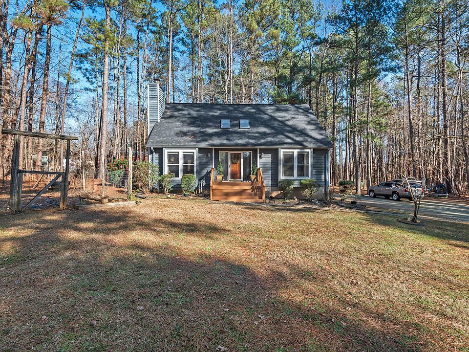 Nestled on a peaceful 1-acre lot, this 1893 sqft home offers both comfort and convenience. Located in the Chapel Hill/Carrboro School District, this home has a spacious layout that features a main-level primary suite, a generous sized living room with a wood burning fireplace, add'l flex space off the updated kitchen, and LVP flooring throughout the main level. Two bedrooms, full bath, laundry area, and lots of attic storage space upstairs making it perfect for a variety of living arrangements. Outside, you'll find a large front and back yard, with a west facing garden spot ready for your green thumb, and ample parking spaces. Low county taxes. 8 minutes from UNC and 25 minutes to Duke. Roof replaced in 2022.