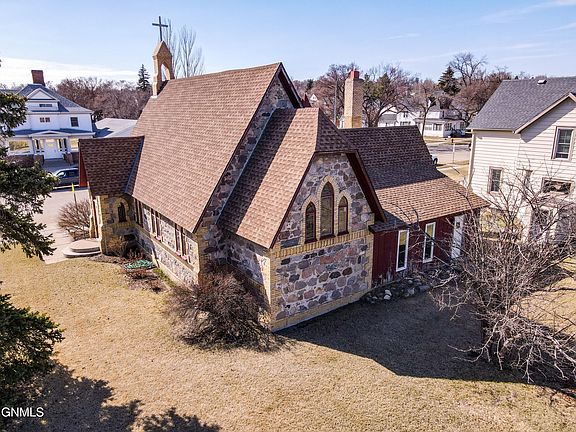 This is your opportunity to own a piece of history. Built in 1881, this church is the earliest of the surviving North Dakota fieldstone Episcopal churches, the only such church constructed entirely by the local congregation and is listed on the National Register of Historic Places. Rough-cut, split-faced granite stones are set in even courses and joined with beaded mortar joints, and the quoins are of brick. Entrance to the church is through a side portico. The pointed-arch side windows are set in pairs and the cedar-shingle roof terminates in a reconstructed brick bell cote. The Gothic Revival church is adorned by a small rose window in the gable end and hammered iron door straps. A parish hall was added in 1900, and a sacristy/office in 1974.
