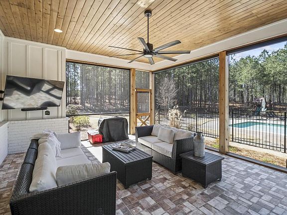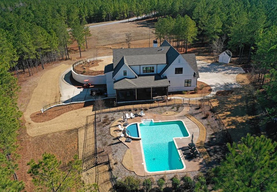 SUNNING LUXARY FARM-STYLE HOME ON 20.68 ACRES IN THE MUCH SOUGHT AFTER GATED COMMUNITY OF CHELSEA FARMS. Beautiful (3) French door(s) entry w/ tiled porch, vaulted ceilings w/ cedar beams, show stopper wood-burning FP, open concept to kitchen, custom cabinetry, high-end appliances & built-in refrigerator, conversation-piece oversized island, quartz counter tops, separate dining room, large plank white oak hardwoods, master bdrm w/vaulted ceilings w/ beams, en suite bath, freestanding tub, walk-in shower, large windows throughout for natural light, spacious bedrooms - all have separate baths, 4-car garage (2 on main lvl), theater in family room, exercise room, game room, upstairs den. HIGHLIGHTS: FABULOUS screened in porch w/ pool view, L-shaped pool with tanning ledge, 5+ acres cleared and landscaped, 15 +/- acres wooded, TOTAL PRIVACY, concrete storm shelter in basement, large walk-in closets throughout. Built in 2019, immaculately maintained. Horses and small farm animals allowed.