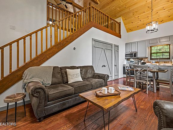VENTURE RESORTS GUARANTEES $65,000 YEAR ONE! This cozy cabin is ideal for a relaxing weekend getaway. Located in the Laurel Valley community, guests have convenient access to Wild Laurel golf course, swimming pool, workout facility, sauna, and an on-site tavern. The charming exterior welcomes you into the open concept kitchen and living spaces that boasts high ceilings and entrances to one bedroom and a wrap around porch. Upstairs you will find a loft space situated with a king size bed and bathroom. Guests are sure to enjoy the laidback lifestyle Townsend has to offer all while being conveniently located for the thrills of Pigeon Forge and Gatlinburg.