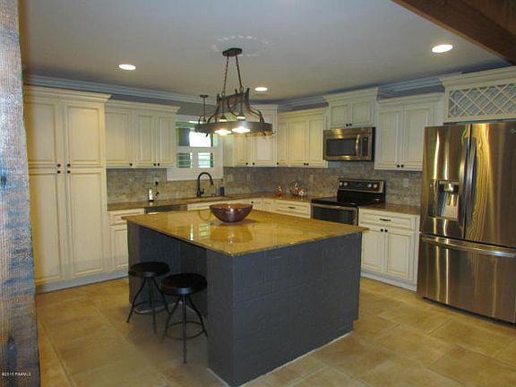 Beautifully redone Acadian style home with 3 bedrooms/ 3 bathrooms that sits on approximately 1.2 acres of land! Roof only 1 year old!!! As soon as you walk in you are greeted with a floor to ceiling brick wood burning fireplace! Open floor plan. Over sized kitchen island with granite counter tops! Stainless steel appliances. Gorgeous stained wooden beams throughout the kitchen/living and dining areas. Upgraded plantation style shutters. Large laundry room with cabinet space, rods for hanging and a built in for folding. 1 bedroom with guest bathroom and master bedroom + master bathroom down stairs. Upstairs you have two built in twin sized beds + a multi purpose area + 1 bedroom and a full bath! Over-sized patio outside with fire pit area perfect for entertaining. Storage area for outside toys and stocked pond! Hurry before this one is gone!