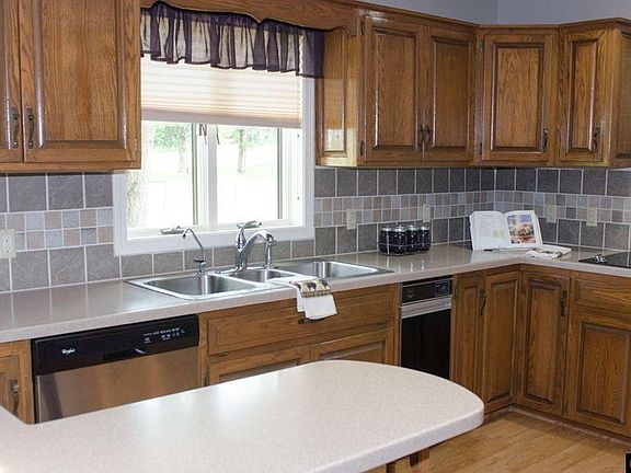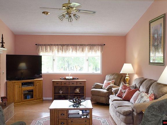 4 bedroom 3 bath home with a bonus room on 10 ac just outside of town. Nice kitchen with stainless steel appliances, custom cabinets, corian countertops; large living room with vaulted ceilings and a bay window. Full finished basement with walkout to concrete patio; huge family room, safe room and add'l garage. One owner home with barn, workshop, spring fed pond, horses allowed, fully fenced with water, septic, elec. service and a concrete slab for an add'l building.