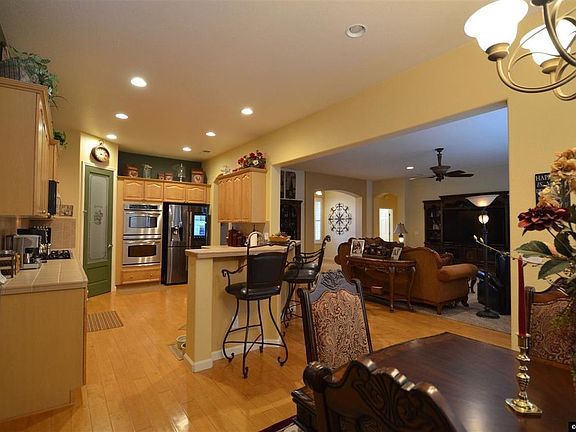 This gorgeous Riverpark home has been beautifully upgraded with maple hard wood flooring, plantation shutters, built-in bar & entertainment center, and custom paint throughout. You'll enjoy 9' ceilings, a wide open great room plan with arched hallways, large master w/ walk-in shower, garden tub, double sinks & huge walk-in closet. The lovely kitchen offers an abundance of counter & cabinet space & GE Profile double convection ovens. Meticulously cared for by the original owners this home shows like a model!